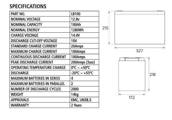 The LB100 is the ideal entry level Lithium battery. LB100 offers long life, reliability, deep discharge and weight advantages associated with Lithium Safe technology.